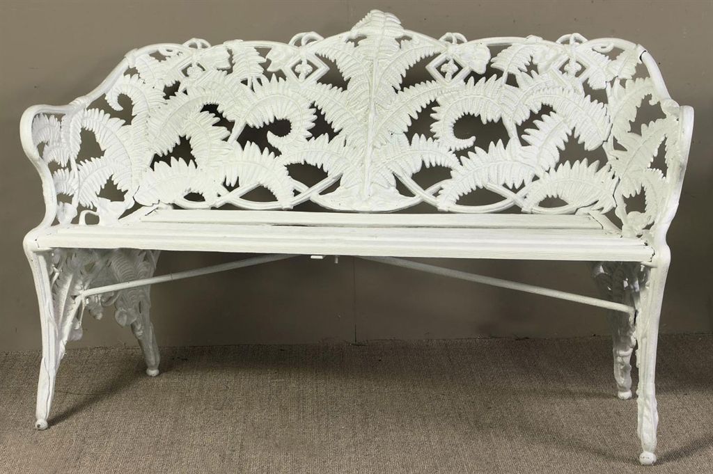American Style White Cast Iron Garden Bench, 20th c.,