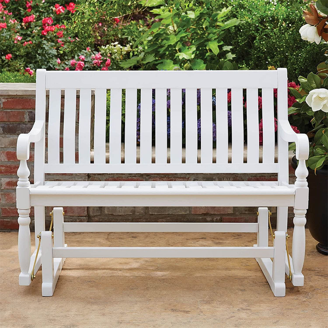 4-Ft Outdoor Patio Glider Chair Loveseat Bench in White Wood Finish